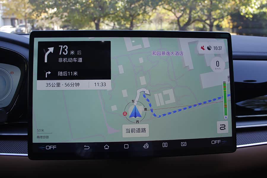 双频定位导航技术主要是针对导航系统作出了升级,L1+L5双频道接收卫星信号,极大提高了车辆在复杂高架、密集街道弱等环境下的信号接收能力,复杂环境的定位精度提高了2倍。本次体验是安排在园区中的静态体验,没有能实际感受到该项功能升级之后的能力,不过官方对该项功能进行升级加强,看得出来汉EV为驾驶者的便捷出行花了不少心思。