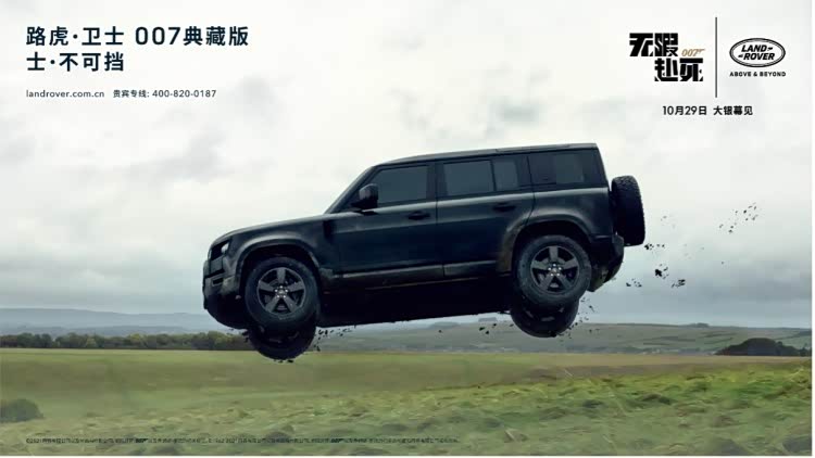 另外,影片《007:无暇赴死》将于10月29日起全面登陆中国院线,届时由路虎卫士、路虎揽胜运动版SVR、第一代路虎揽胜、路虎Series III及捷豹XF组成的明星阵容会在影片中悉数登场。