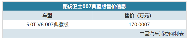 【新车上市】10月22日,在第25部詹姆斯·邦德系列电影《007:无暇赴死》点映观影之际, 路虎卫士 007典藏版正式官宣上市,限量发售300台,中国市场将提供70台配额,官方建议零售价格1,700,007元人民币。