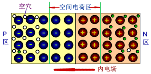 PN结的负极里由于掺杂了磷,存在大量带负电的电子;正极里由于掺杂了硼,存在大量带正电的电子空穴。