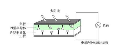 这里光就相当于一个外力,推动电流流动,光照强度越大,电流就越大,光伏发电就是这样把光变成电的。
