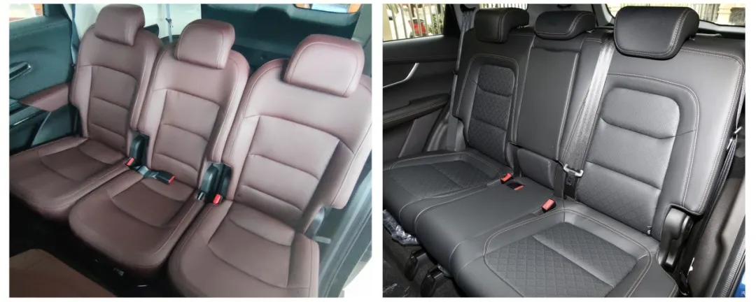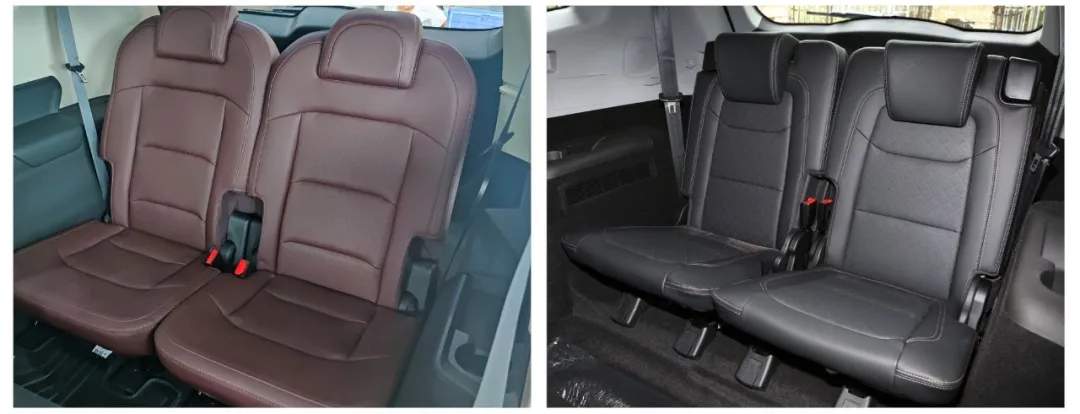这都不算是什么大的区别,主要区别在于载上4个人和一车行李,需要放倒第三排和二排的一张座椅时。这时候,瑞虎8只能两个人挤在那个二人座上,而豪越能放倒中间座椅,两人可以保持比较大的社交距离。