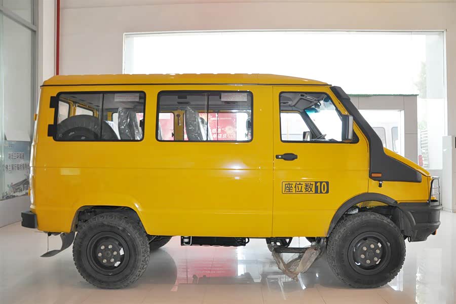 而车身侧面基本还是二十年前刚上市的时候的样子,非常的方正,车窗的造型也是规规矩矩的长方形,使用了推拉窗的结构。而胎壁较厚的越野轮胎以及较高的离地间隙都让其看上去比普通版的依维柯得意更加粗犷威猛。