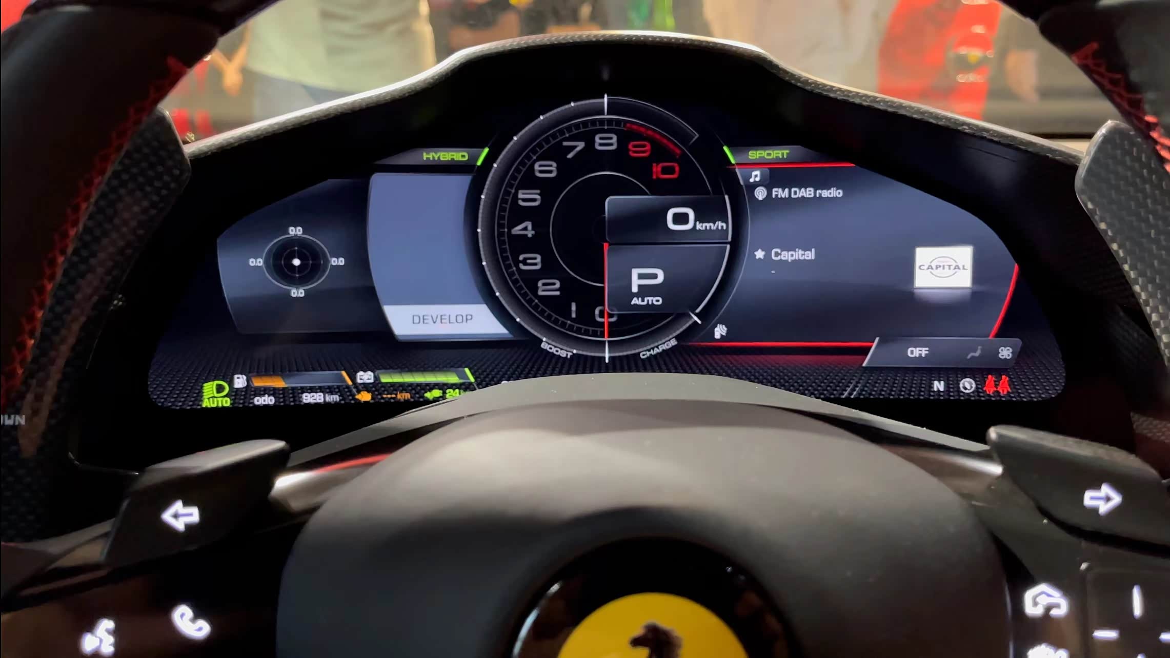 而内饰方面,296GTB的座舱搭载了一套全数字化交互界面,这个全新设计概念最先在法拉利SF90 Stradale车型上首次亮相。这一内饰布局从SF90 Stradale中汲取灵感,并保持了统一的风格。采用全液晶仪表盘,可以显示更多的行车信息,诸如导航、车辆状态等功能可以更好地展示在驾驶员眼前。而且整个内装采用了大量的碳纤维与皮质材料,进一步增强运动感与豪华感。