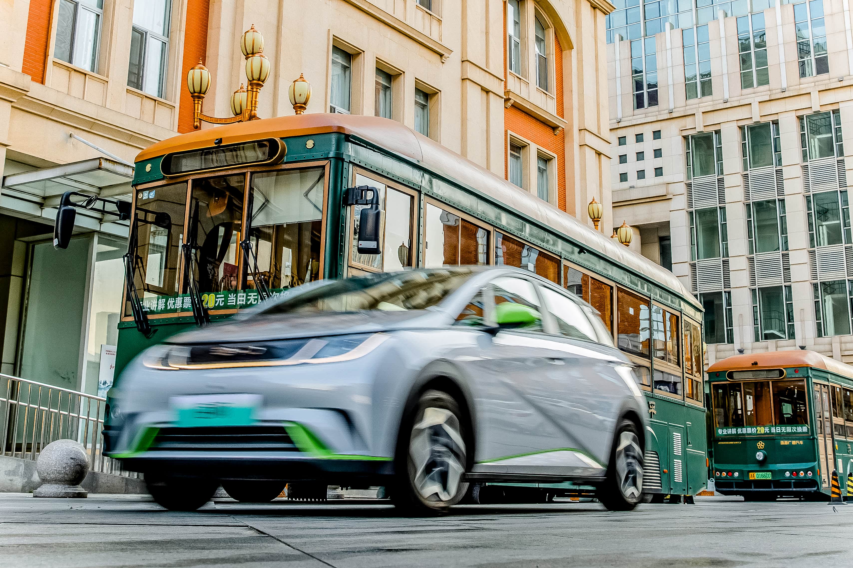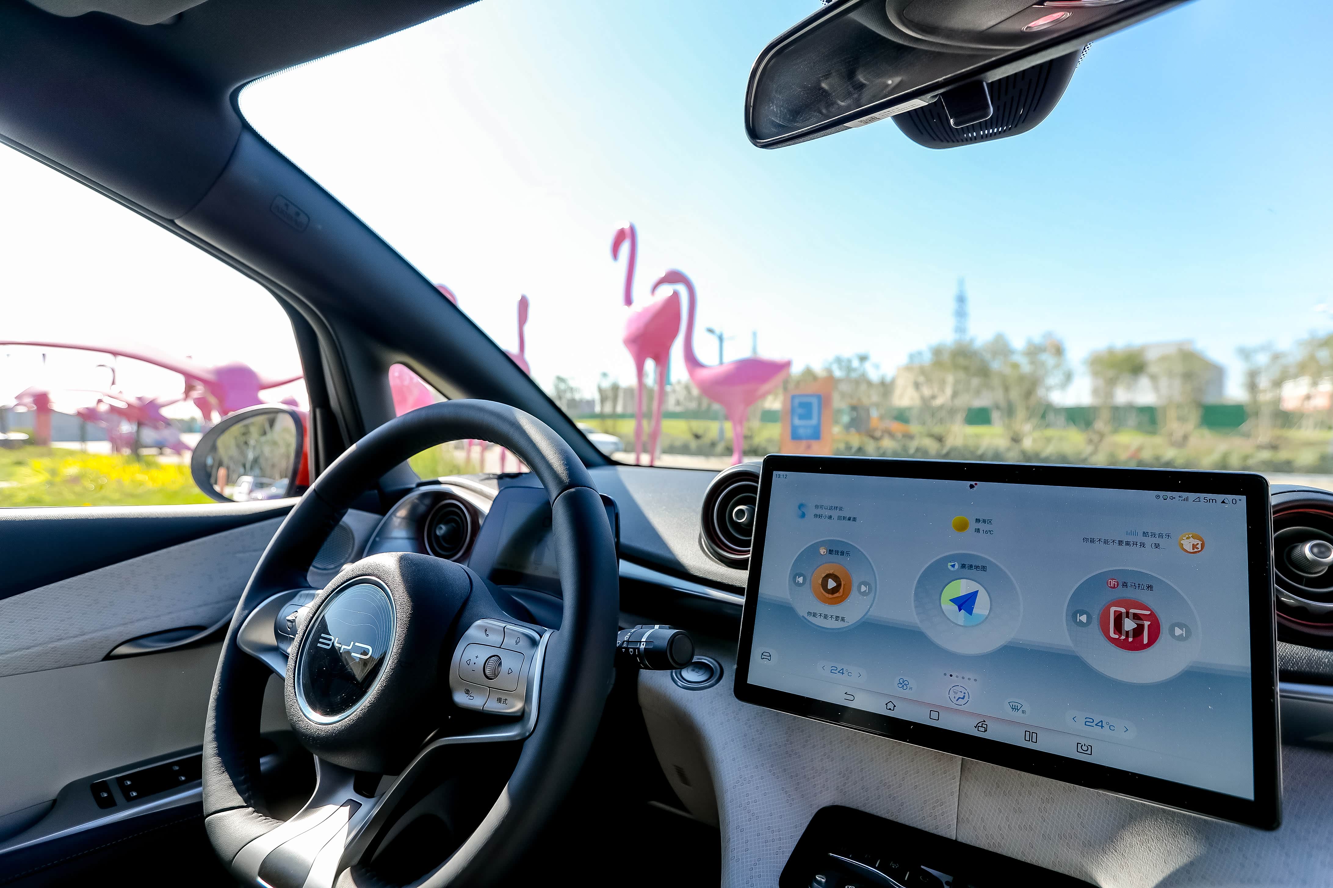 首先跟大家汇报一下,我们驾驶的车辆是售价10.88万元的时尚版海豚,早晨在酒店统一集合,车上承载3人,满电出发,车内空调设置为自动24度。