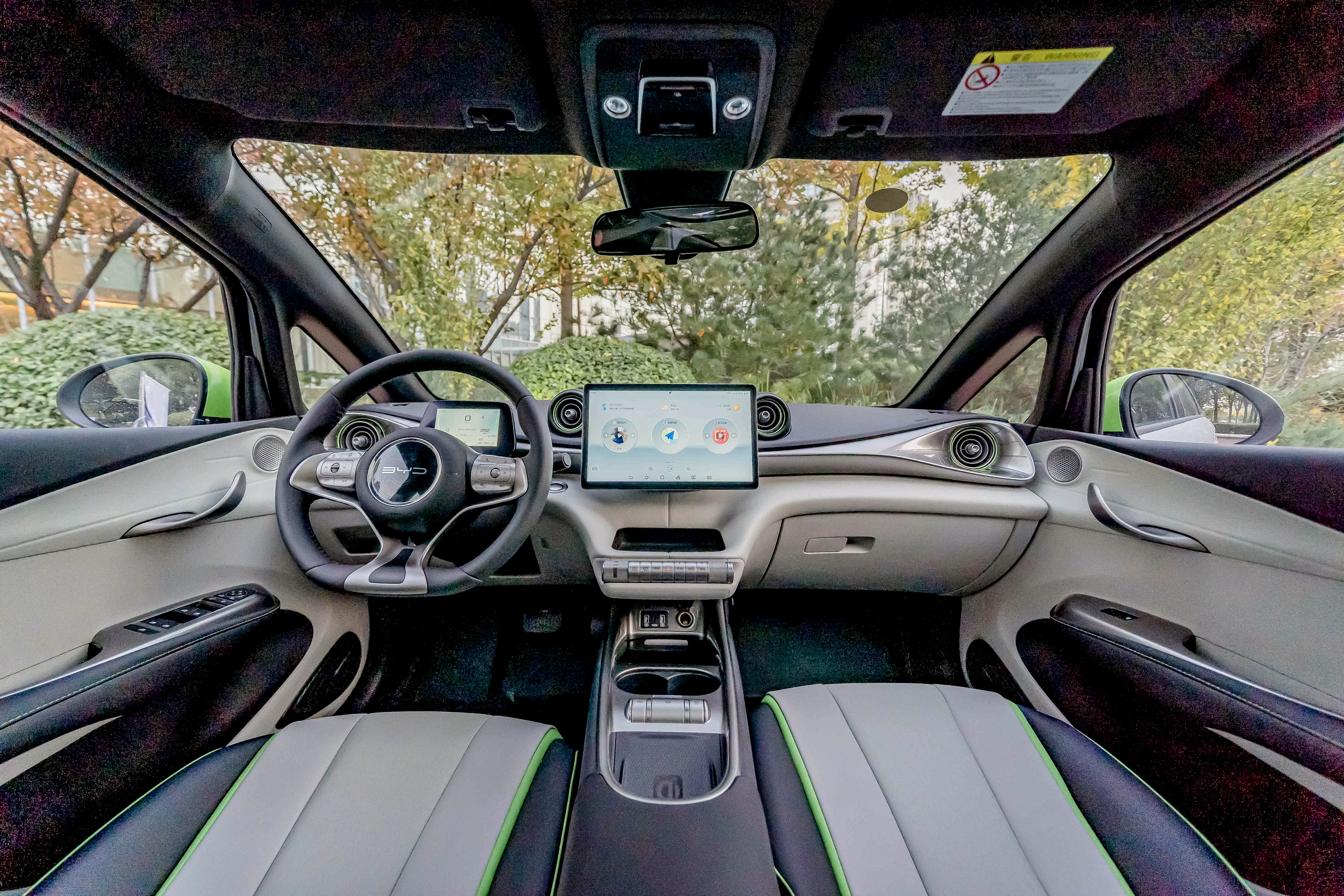 采用“闪闪蓝”“飒飒绿”“蜜蜜橙”作为跳色点缀的车型,也采用这三种颜色作为内饰配色。采用“噗噗粉”和“冲浪蓝”为主色的车型,同样以粉色和蓝色调作为内饰配色。