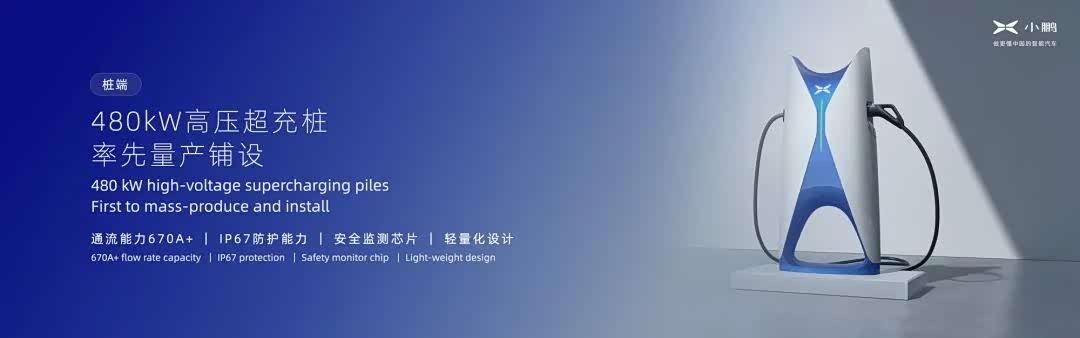 简单看一下数据,在车端小鹏的方向是 800V 高压平台 SiC 平台,最高支持 600A 电流输入,电驱动效率大于 95%;在桩端小鹏的方向是 480 kW 功率,配合轻量化的设计。