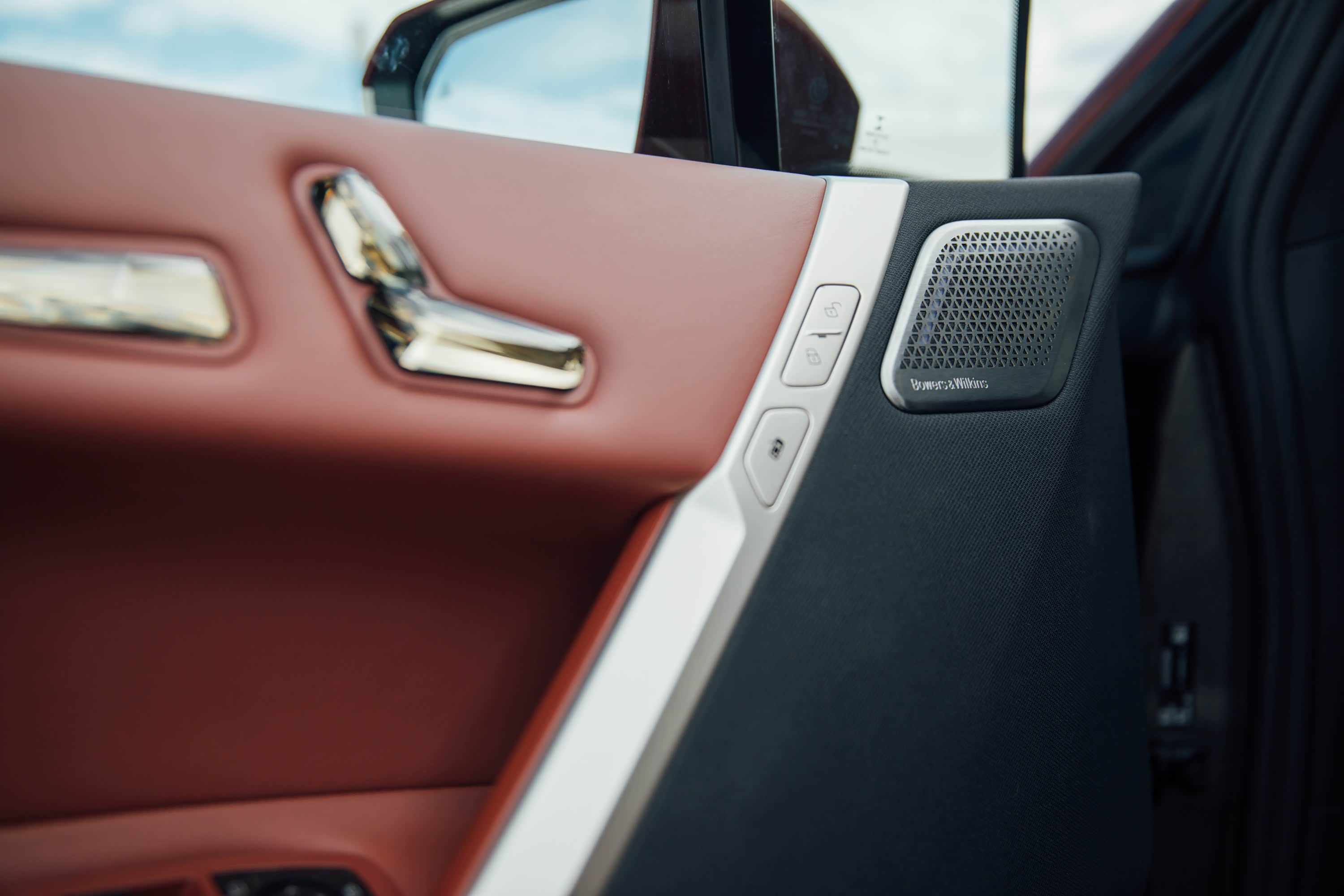音响系统来自于宝华韦健,宝华韦健作为英国的顶级音响品牌,已经有半个世纪的历史,此次BMW iX整套音响系统30个扬声器都来自于宝华韦健,我们从中控台中间位置就可以隐约看到宝华韦健经典的“银盆”扬声器。而且整套音响系统总功率达到了1615瓦。充沛的音响功率配合上座椅内置的共振器,随着音乐节奏不断的变化,震动随之变化。音响和共振器组成的4D音乐体验,目前是量产车当中顶级规格。