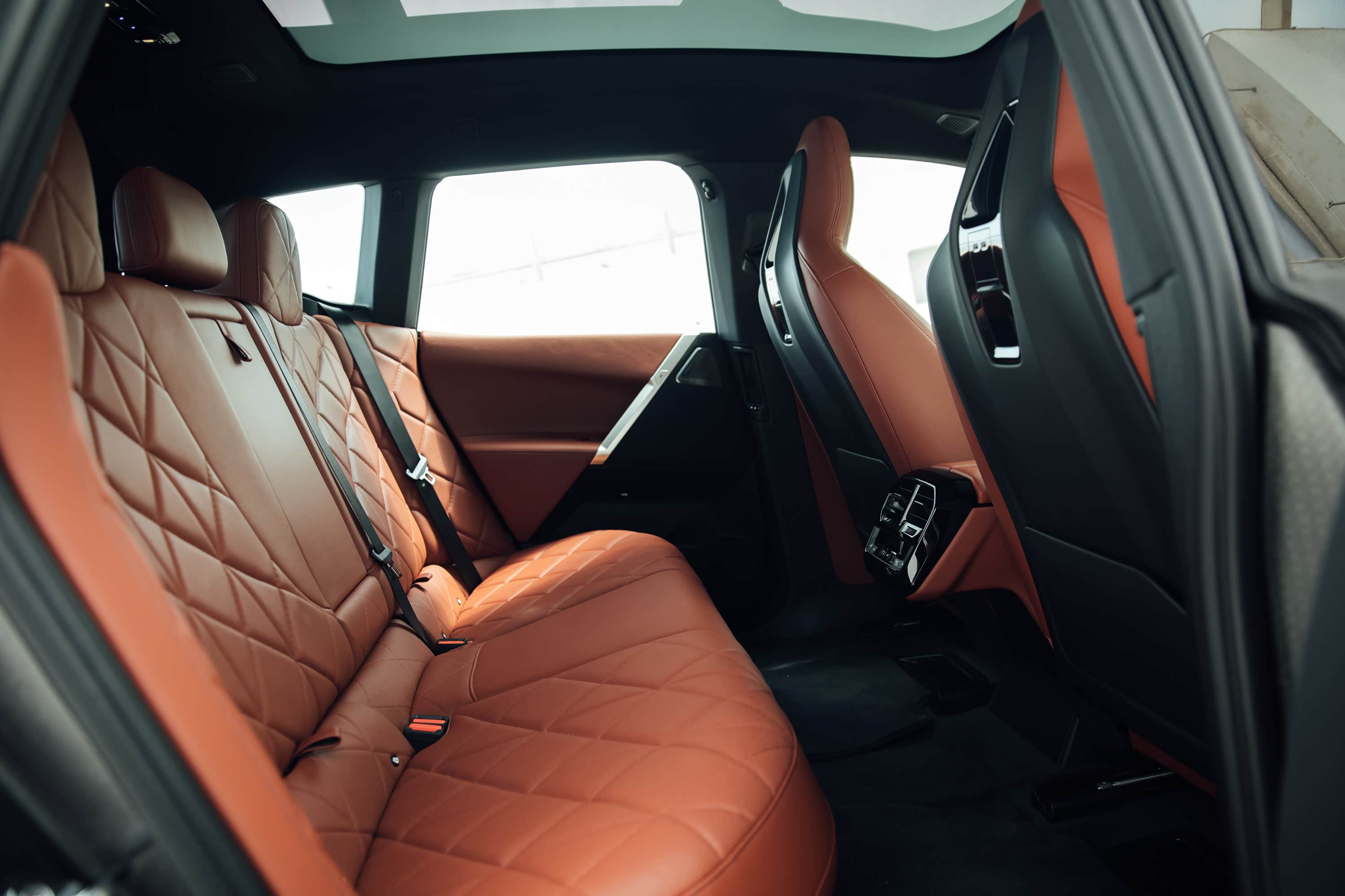 后排座椅也是前排座椅那种大沙发的感觉,而且后座两侧是有延伸设计的,皮质包裹的位置一直延伸到C柱,进一步提升舒适度,细节的地方都是礼遇。并且在乘坐空间方面,这台车基本达到了BMW X5的水平,关键是后排的地板是纯平的。前排座椅靠背后方设计有四个USB-C高功率充电口,前排座椅靠背的后方还具有拓展插座,完全可以根据个人需求进行配件选装,你可以选装平板电脑给后排的孩子放个动画片,或者选装一个衣架挂上自己的西服。