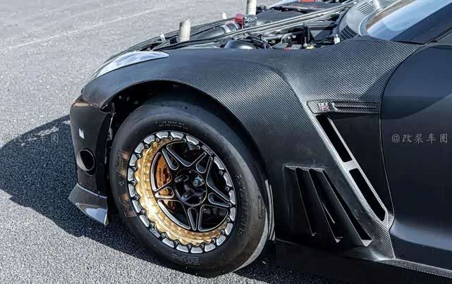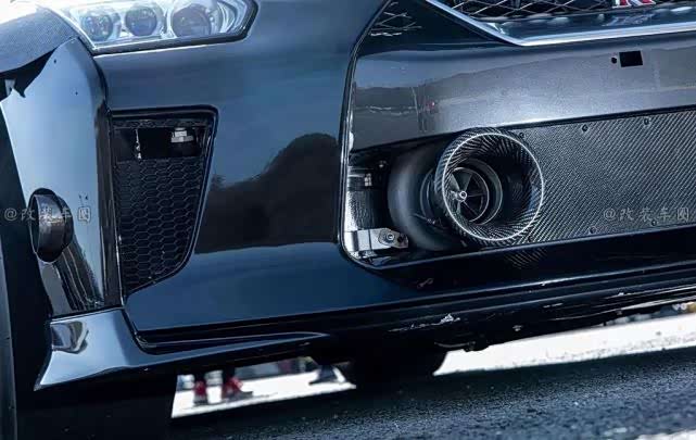 由于涡轮的位置占据了车头,水箱被移动到汽车的底部,此外,对于轻量化的部分,叶子板、后桶盖、后玻璃等部件,均用干碳纤维材料取代。
