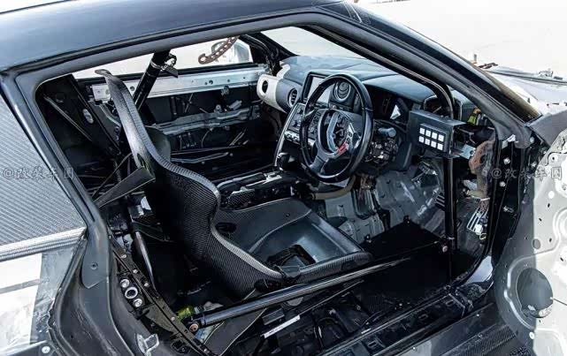 要减到近400kg,除了碳纤维套件之外还不够,尽管座椅的部分用干碳材质也不够,所以这车把不必要的部件全部无情地直接切割掉。