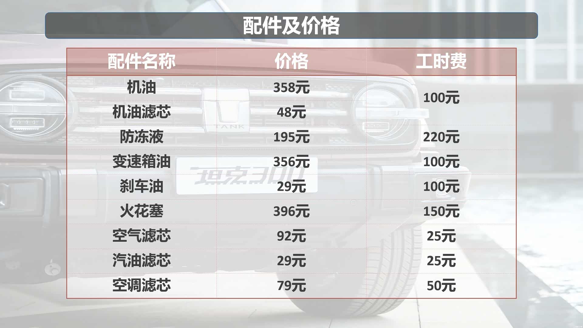 首先抛出结论,由于厂家给予坦克300共10次免费保养,其中首保、二保项目全免费,后8次仅包含机油、机滤、组合垫圈和工时,所以这款车型前3年的保养成本并不高,不过较高的油耗却拉了后腿,让车辆的使用费用直线上升。