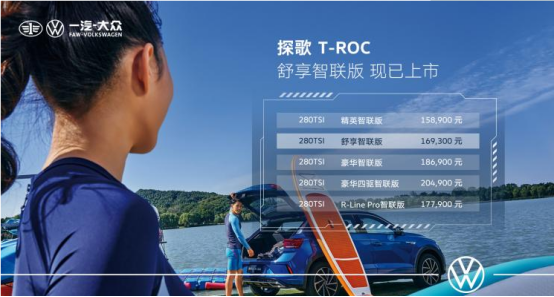 2021年10月20日,一汽-大众旗下紧凑型SUV——T-ROC探歌新车型正式上市,新车仅推出一款配置车型,售价为16.93万元。外观方面,作为新增配置车型,新车变化不大,依然采用的是T字形家族前脸造型,前大灯上方带有L型镀铬饰条装饰,配合两侧的环状LED日行灯/转向灯,看上去非常个性。车尾部分,新车采用了许多凸起的线条进行勾勒,使整个尾部造型层次感更加分明,搭配左右两侧棱角分明的尾灯组,视觉效果突出。配置方面,本次上市的探歌280TSI舒享智联版车型搭载了ACC 3.0自适应巡航系统,具备定速巡航和跟车巡航两种模式,通过接收车头雷达传感器信号,可实现自动跟随前车行驶。动力上,新车搭载EA211 1.4TSI发动机,其最大功率为150马力,峰值扭矩为250牛·米。传动方面,与之匹配的是DQ200 7速干式双离合器变速箱。