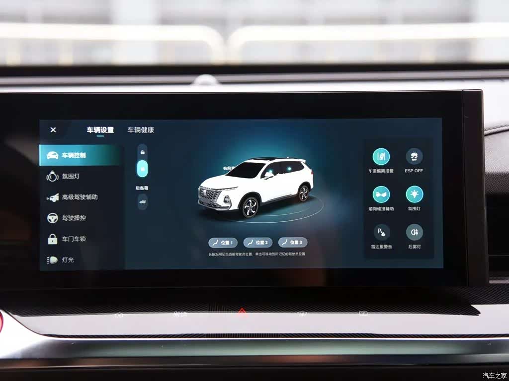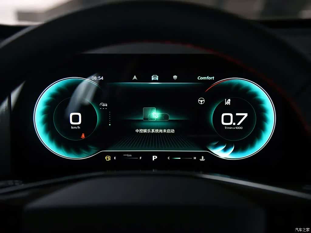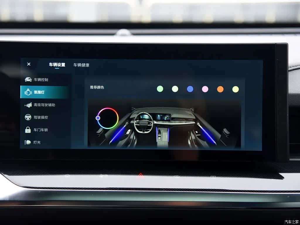 全液晶仪表盘和中控屏的尺寸均为12.3英寸,屏幕显示效果清晰,仪表盘支持多种显示主题,中控屏仍搭载荣威品牌目前主打的斑马VENUS系统,并将大部分的车辆调节功能(如空调、驾驶模式等)集成在屏幕中。256色氛围灯可在屏幕选择自己想要的颜色,播放音乐时,氛围灯可与音律联动,仪式感非常到位。