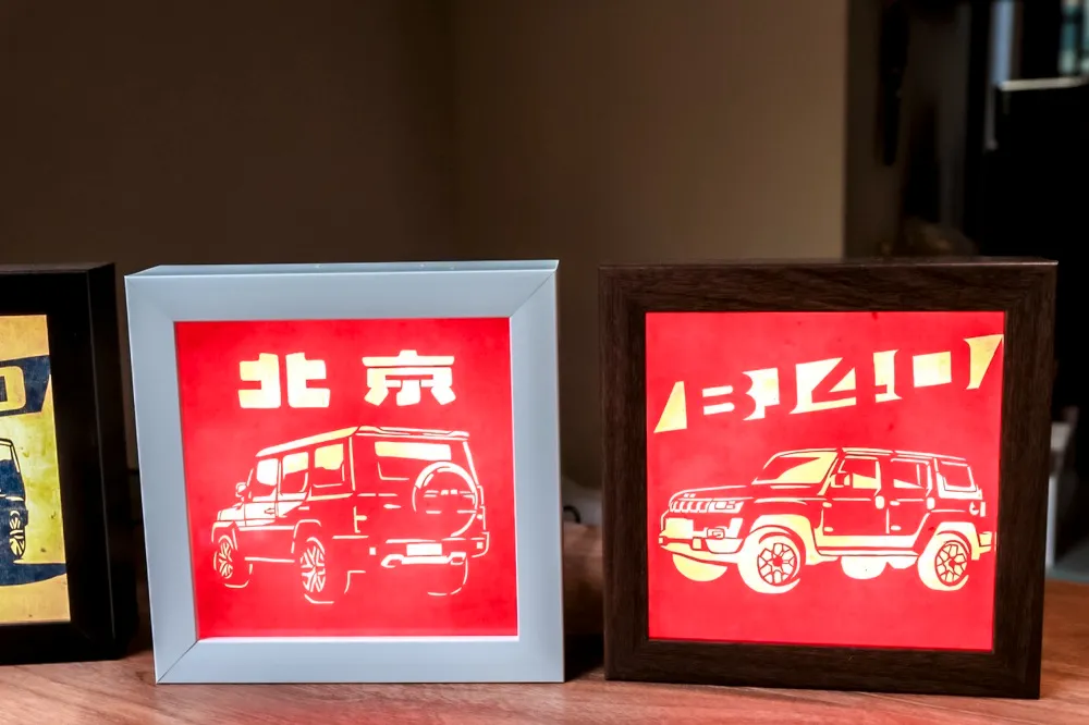 小T体验了非遗民间工艺“剪纸”,河北省蔚县地方传统手工剪纸技艺,国家级非物质文化遗产之一,蔚县剪纸源于明代,是一种风格独特、在国内外享有盛誉的传统民间艺术。清代末年,蔚县剪纸工具改革,由“剪”变“刻”,所以这次我也刻了BJ40的剪纸,真的是需要耐心。北京越野虽然走的是硬派越野车的路线,但是设计方面是融合了很多国潮元素,弘扬中华文化,从车型设计做起。