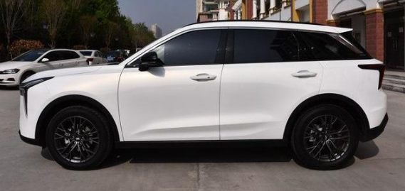 车身侧面,采用的线条比较方正,腰线的设计比较平缓,看着十分大气时尚。熏黑处理的密幅式的轮毂,凸显了精致感,力量十足。