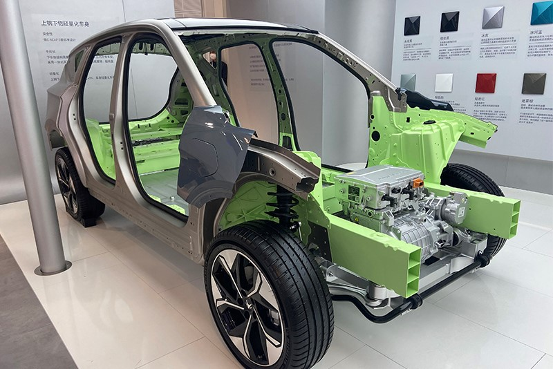 以极狐品牌车型为例,其选择的是钢铝混合、上钢下铝的车身结构,在下车体采用多种形式的铝合金材料,实现轻量化的同时保证碰撞吸能和压力传递。而上车体则采用不同强度的钢材,在减小体积的同时实现了高强度、高安全的碰撞性能。