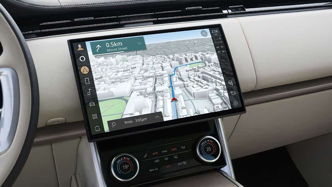 进入车内,全新揽胜的仪表盘尺寸达到了13.7寸,中控屏幕达到了13.1寸并带有力度反馈。