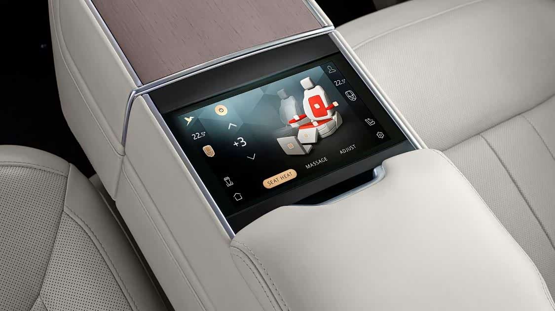 除了前排屏幕,全新揽胜还在座椅后向为后排乘客提供了一对11.4寸的屏幕,后排扶手也有一块用于调节座椅的8寸屏幕。