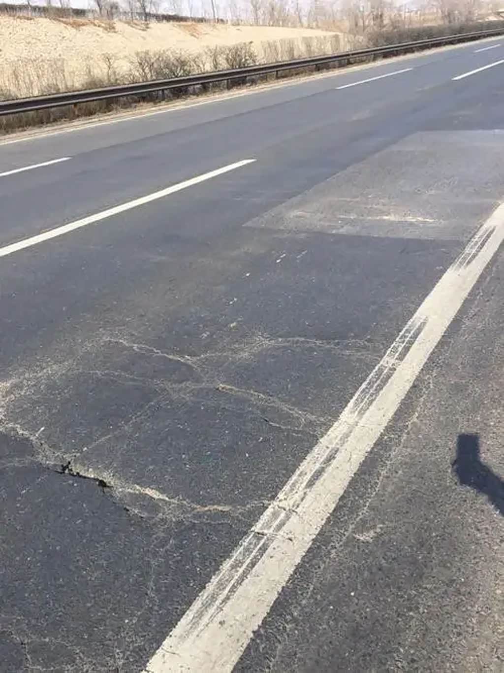 现在各地高速公路上都有可能遇到这种路段,因为大部分情况下都只处理有问题的路面,所以就出现了处理过的车道颜色变深,而没处理的车道还是以前的颜色。处理过的车道因为表面粗糙度增加了,所以行驶中能明显感觉到胎噪变大,甚至还能感觉到方向盘有轻微的抖动,感觉非常不舒服。但是这种路面的摩擦系数却大大提高了。