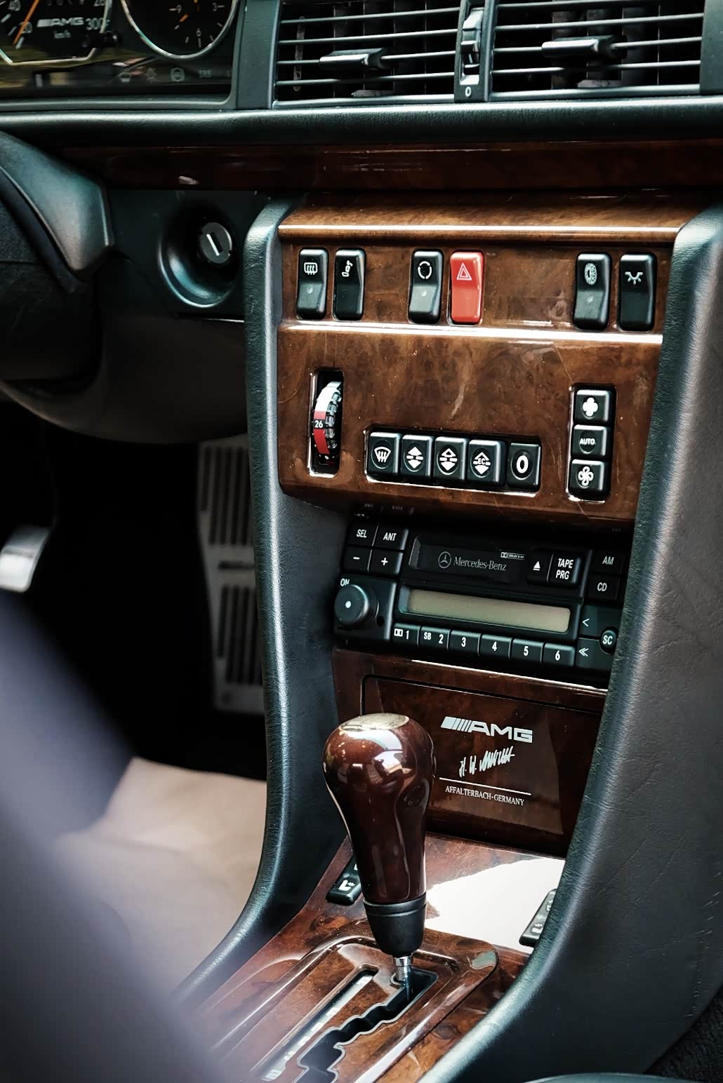 当年性能轿车界的霸主是BMW宝马,为了和BMW5系进行竞争,也填补奔驰在高端运动轿车的市场空白,奔驰在1990年与AMG签订合约,正式开始了深度合作;由于当时奔驰并没有性能部门进行研发和生产,所以找到了当时经营困难的保时捷,由保时捷进行组装/调教等重要的工作。他们将一颗5.0升V8发动机(326HP)塞入了W124中,搭配4速自动变速箱,装备四活塞卡钳。最终,我们便看到了这辆奔驰保时捷共同打造的杰作,并由AMG改装升级,堪称极品。