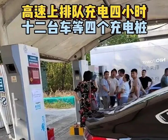 流传最广的,是一条“充电一小时,排队四小时”的新闻:一位车主从深圳驾车回湖南,在服务区充电时,排队4小时,充电又花去1小时,前后花了16小时才到家。
