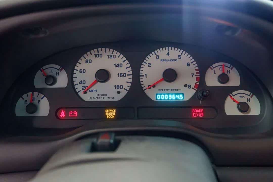 甚至前雾灯都被卸下了,取而代之的是空气管道用来为Brembo刹车进行散热。与所有SVT部门打造的Cobra跑车一样,这款车采用了后独立悬架。虽然这款车如此的强悍,但据我推测,此前拥有这辆车的两位车主应该从未体验过这种驾驶感觉,因为截至目前,这辆车的总行驶里程仅为365 英里,也许这辆车一直被关在车库中,从未上路行驶过。