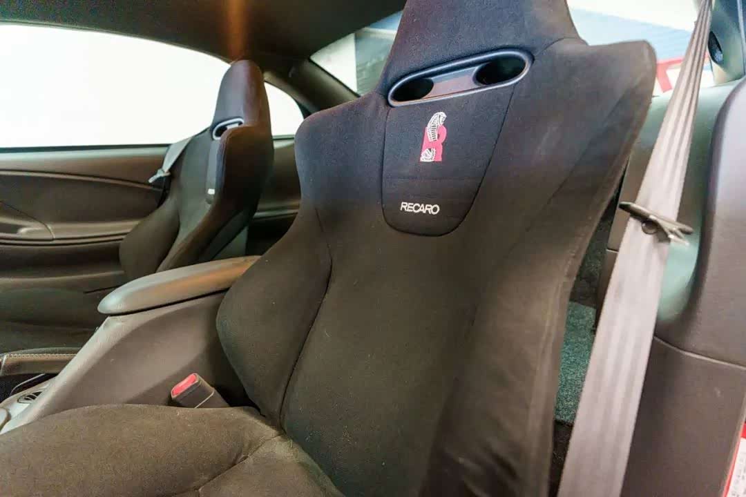 外观方面,这款车看起来几乎2000年普通版Cobra R一样,拥有专属的Performance Red车漆外观,原厂的空气动力学套件,固定式后尾翼,侧出排气系统和五辐合金轮毂。另外,这款车还在Cobra R的基础上配备了四活塞Brembo刹车卡钳,Eibach减震和较大的赛车防倾杆。