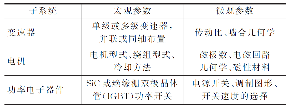 在研究人员确定了关于汽车的技术要求之后,后续步骤通过确定每个子系统的重要设计参数来优化动力总成系统。本文重点探讨集成式驱动模块(iDM)的结构设计优化过程。该驱动模块由3个子系统组成:变速器、电机和功率电子器件(图3)。