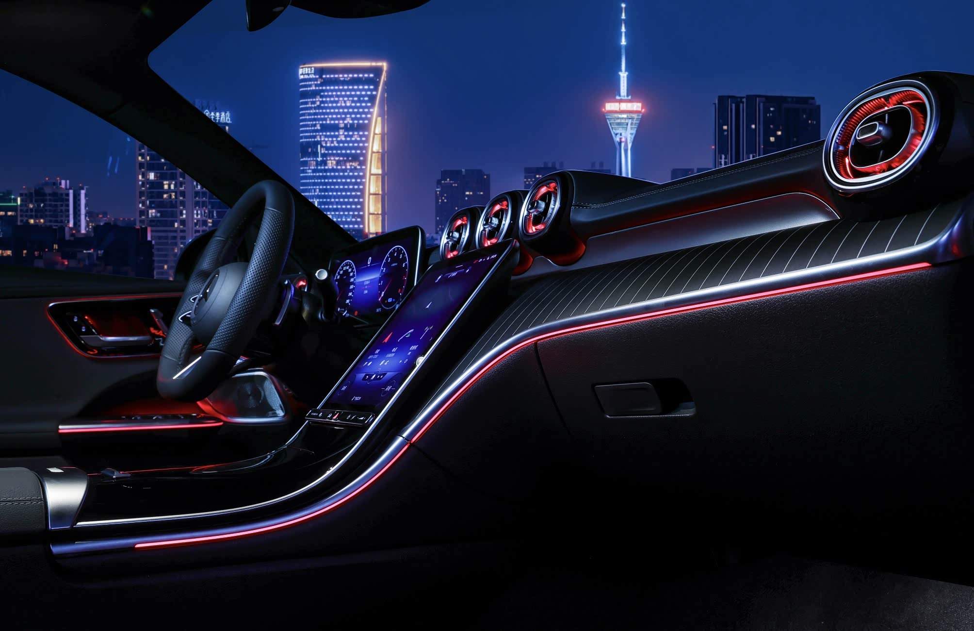包括大面积的钢琴烤漆和金属材质的碰撞、拨弄门板上按键所发出的机械声,所谓的豪华并不是某一处所带给你的,而是需要车内所有单元来交织出平衡,这之中当然也包含了奔驰C级的氛围灯。