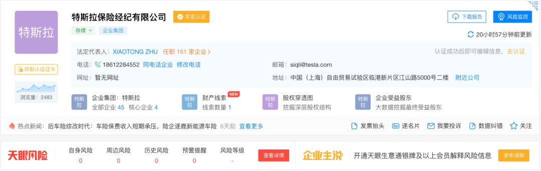 作为新任的全球首富,马斯克所说的每一句话肯定都是带有目的的,你以为他只是一时兴起,头脑发热而吐槽车险制度?其实特斯拉早就布好了局。通过企业查询我们可以发现,早在2020年8月份,特斯拉香港就出资5000万悄悄成立了特斯拉保险经纪有限公司。
