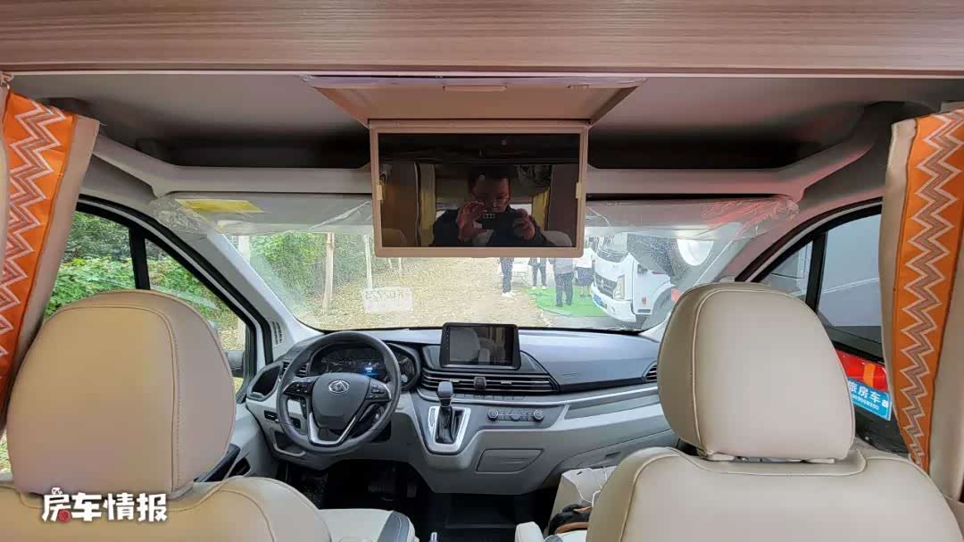 同时在驾驶室顶部还隐藏了一台19寸的吸顶电视,为平时的旅居生活提供娱乐节目。