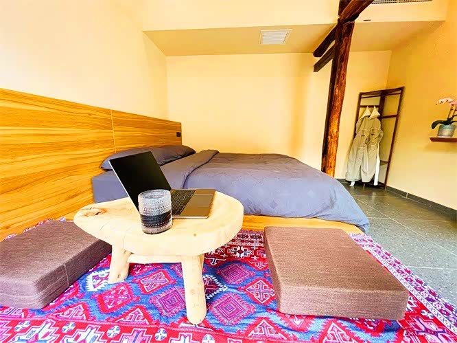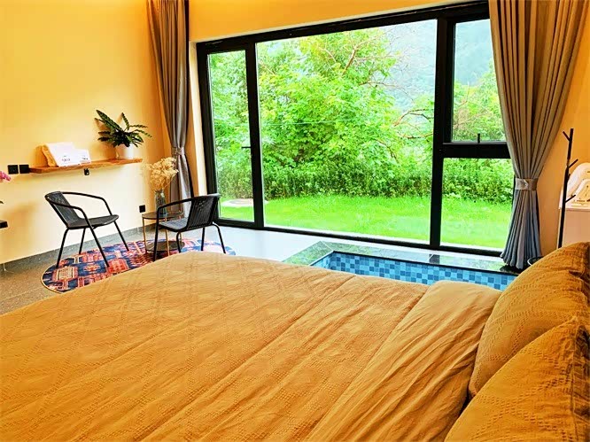 怀柔慕田峪长城将遇精品剧本杀私汤温泉民宿,共计6个卧室,可以容纳20人左右,客房内的所有设施都是经过精心的考虑和安排,独立的空调以及满铺地暖,入住是非常舒适的体验,如果有团建需求来这里就对了,一整层的空间可以自由发挥,和住宿区完全分离,晚上陷在懒人沙发里看电影、喝咖啡、玩游戏,这才是度假该有的悠闲呀!