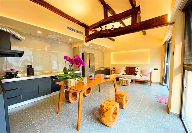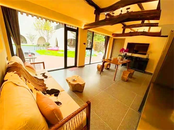 北京怀柔慕田峪长城将遇精品剧本杀私汤温泉民宿,位于怀柔区渤海镇东四渡河村108号,整个院落大约1400平米,建筑面积将近500平来,晨醒来,可以沿着公路跑跑步、看看日出,目之所及之处都是宜人的风景, 或漫步在田野里,看夕阳洒满山林间,寻找心灵上的闲暇,享受悠闲的自处。