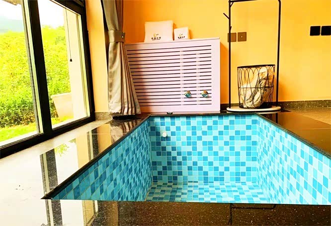 民宿整体房型色调主要黄色和灰色,简约的设计,给人一种清爽的感觉,午后有温柔的阳光洒下来,看到蓝天白云,房间显得很温馨,别有一翻情致,浴缸正对青山,可以一边泡着温泉看着山,让你足不出户,可以看潮起潮落,日出和夕阳~