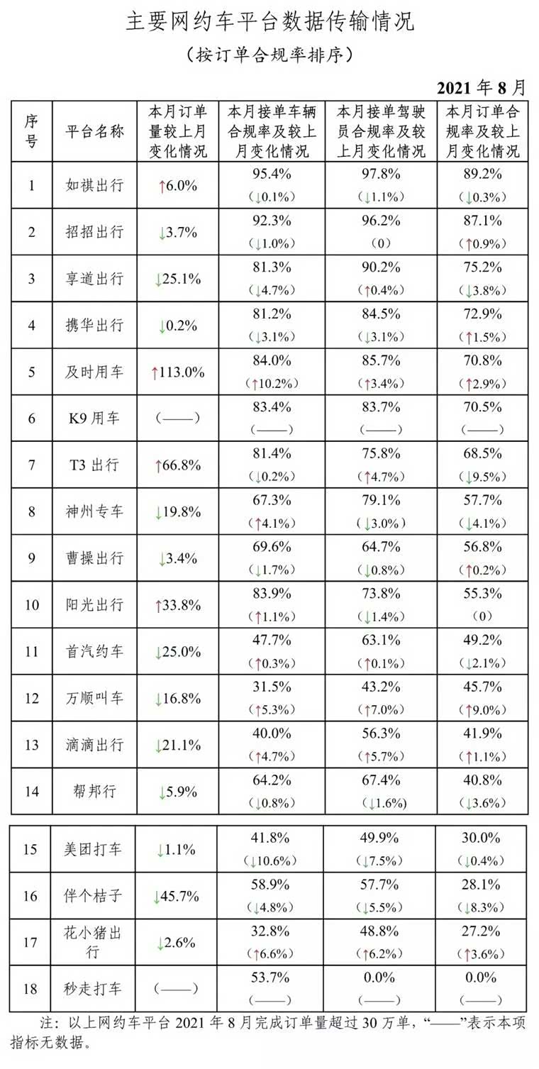 交通运输部门就明确规定,对各平台要规定网约车的合规化工作方案,针对多家网约车平台公司约谈,提出今年年底前,车辆、驾驶员合规化工作的具体目标,同时要对36个中心城市的情况进行逐月通报,加大城市的合规化监管力度。