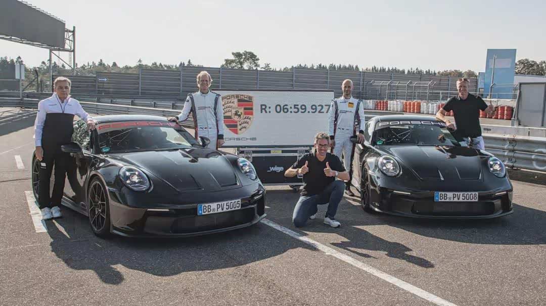 在国六b排放法规实施的第二个月,也就是2021年2月,保时捷全新一代911 GT3正式发布。在有着“绿色地狱”之称的德国纽博格林北环赛道上,这台性能怪兽取得了6分59秒927的惊人圈速,比上一代车型的7分12秒7,足足快了13秒之多。