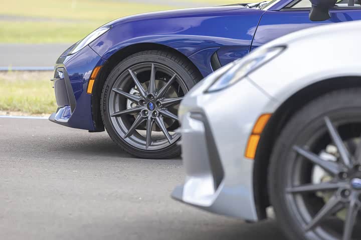 斯巴鲁让新一代BRZ在采用运动轮胎时,车尾抓地性更好。与上代车型相比,新一代BRZ前悬架弹簧刚度提升了7%,后悬架弹簧刚度则降低了11%。此外,新车后部防倾杆直径也由上代车型的15毫米降低至了12毫米。