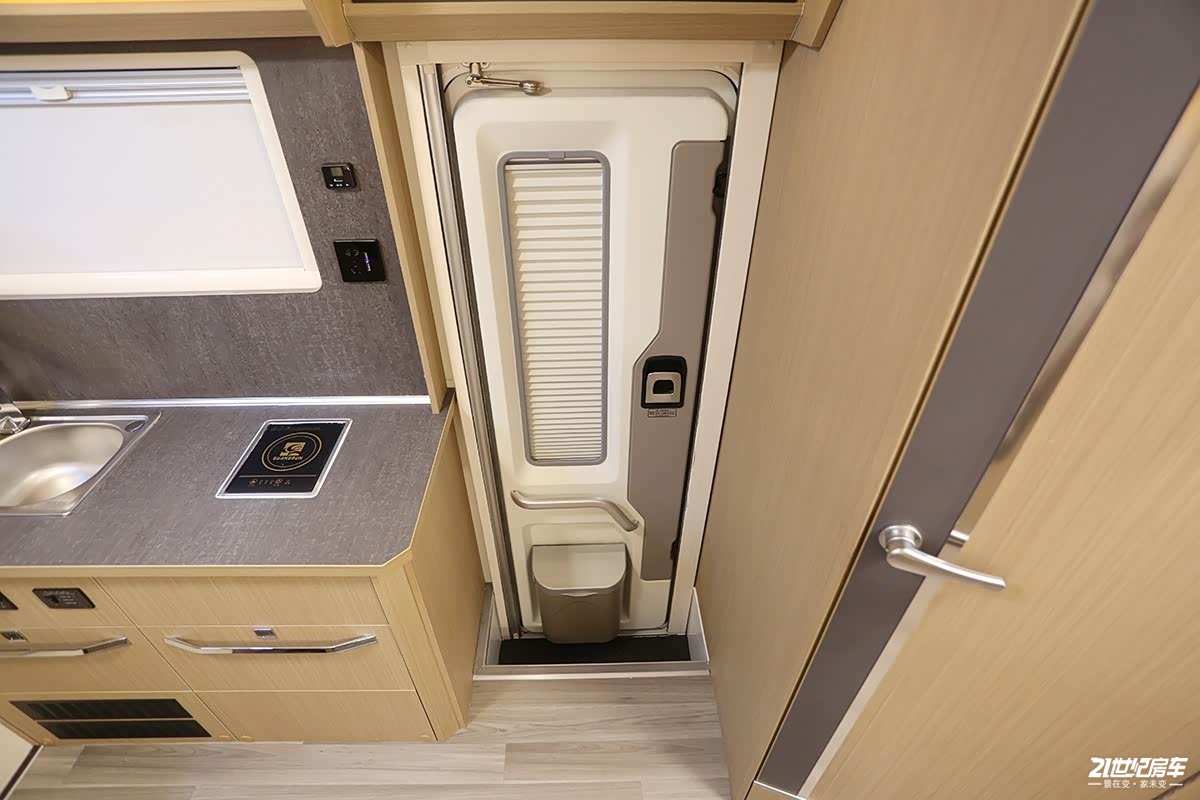 新车中门为欧式乘客门,配备了隐私帘,可拆卸垃圾桶和下车扶手。