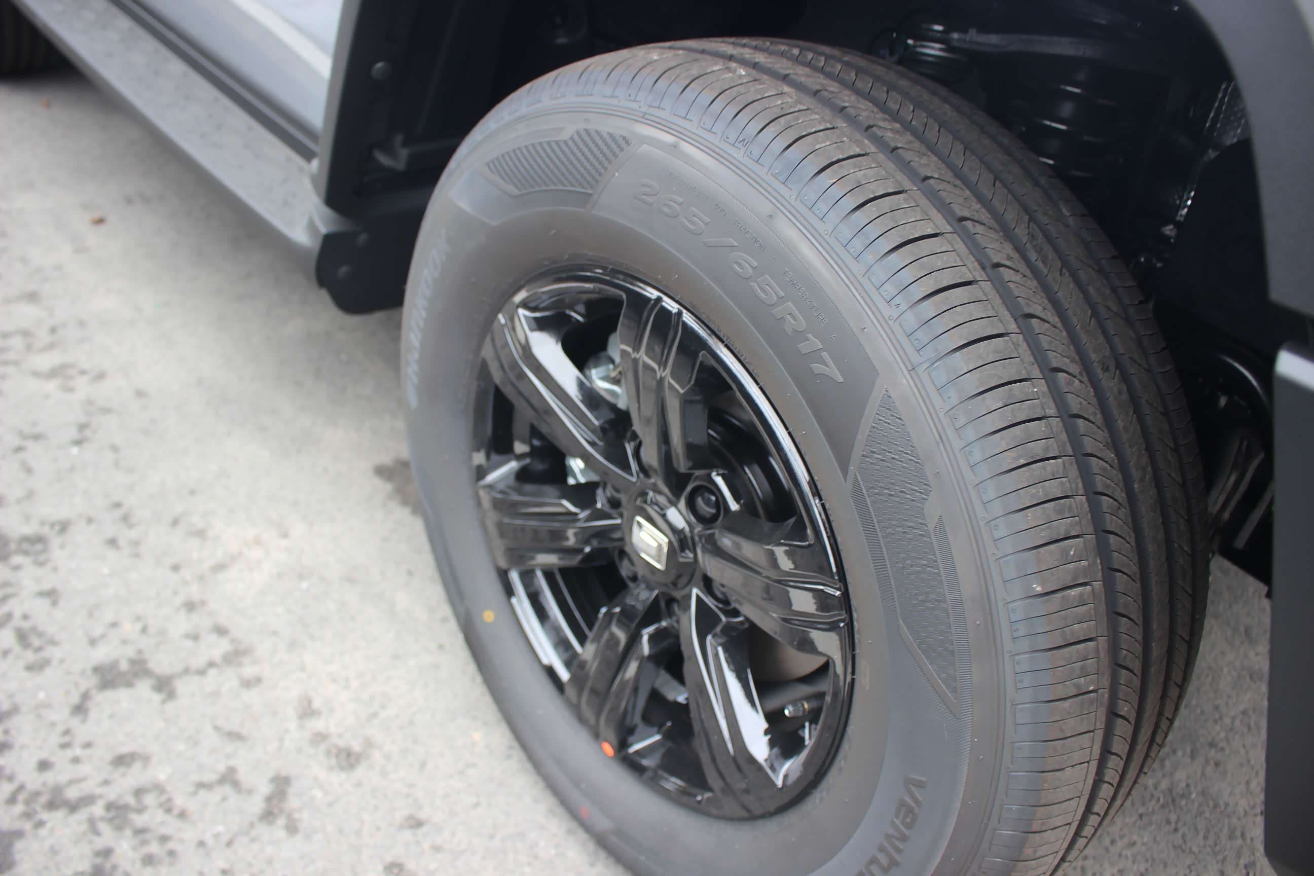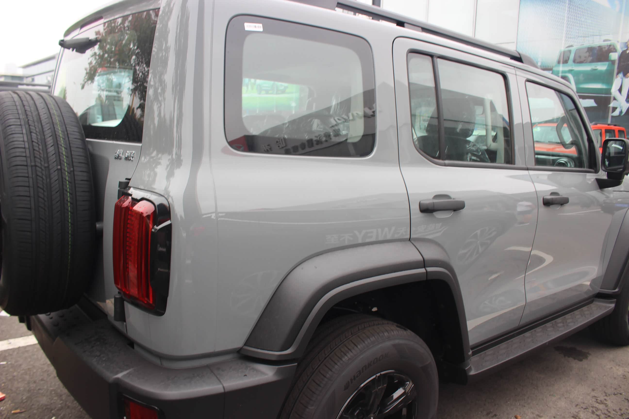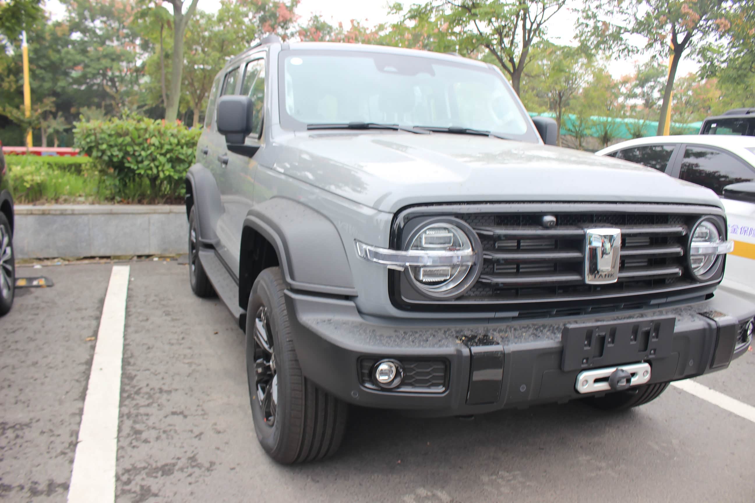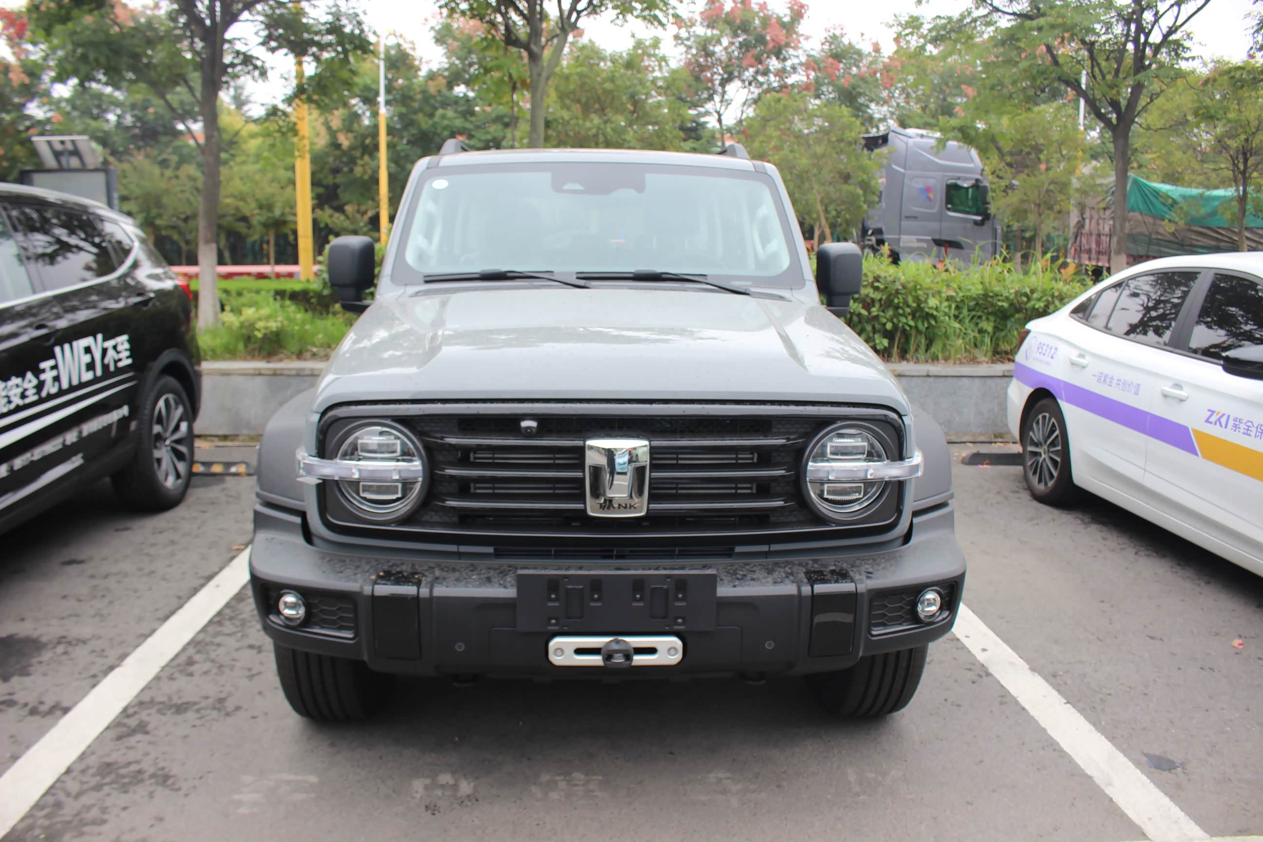 外观造型是年轻时尚的,灰色涂装很高级,车头两侧配备了圆形的LED大灯,中间还带有粗壮的灯带,点亮后很有仪式感。前包围的造型显得非常的厚实,引擎盖两侧的筋线凸显出肌肉感。侧面的方盒状车身造型是很霸气的,门把手、轮眉都采用黑色护板包裹,车顶的行李架凸显出越野感。尾部配备了外挂式备胎,辨识度是很高的。