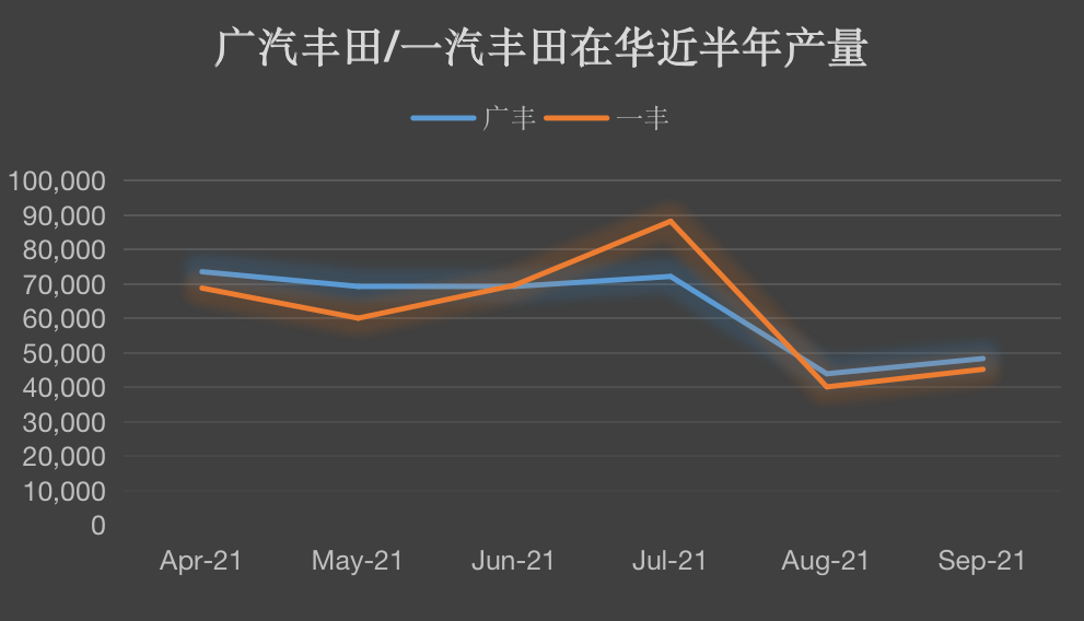 一汽丰田近两个月的销量同样难看,9月销量同比更是从8月的-10%降至-46.5%。如果说广汽丰田的惨淡还有广汽集团的一部分原因的话,那么一汽丰田相似的市场销量走势已足够说明,丰田供应端存在严重不足。