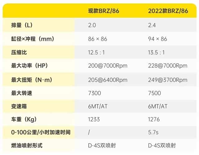 跟老款相比,GR 86在整体重量仅“增加一位小姐姐”的情况下,动力输出分别提升了35马力和45牛·米(注:数据仅供参考)。或许,这对于涡轮机来说,也就是3000元刷个“罐头”那么简单。不过对于自然吸气发动机来讲,以0.4L的排量增幅获得这样的动力提升,并非易事。