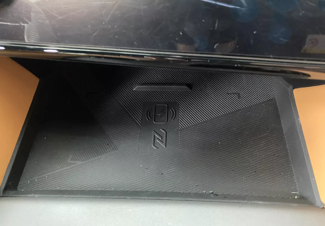 领克09的手机无线充电区域为横向布置,虽然面积比较大,但单边限位的结构在行驶时也让手机有了晃动的空间,并不能完全保证手机始终保持在充电符号的中心位置。