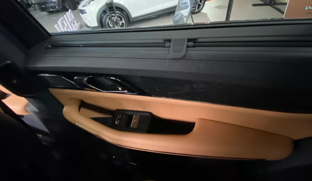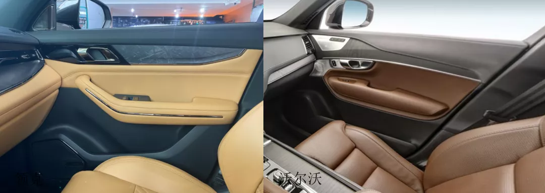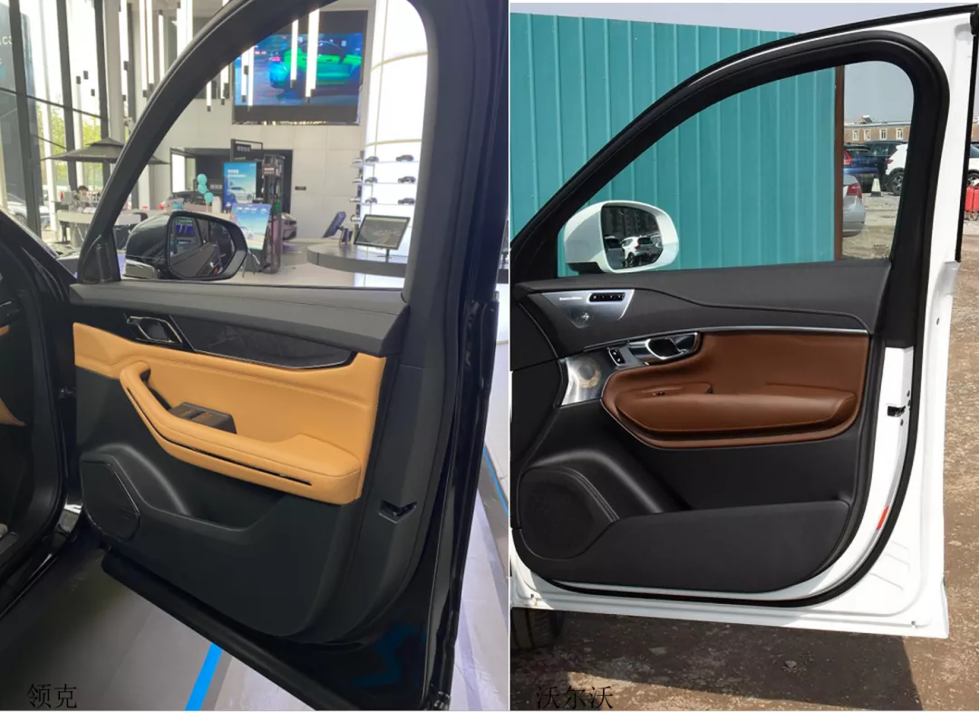 领克09的门板线条相比XC90更简洁流畅,包覆没有那么臃肿,装饰元素也更能跟仪表板联系得起来,钣金下围相比XC90也有延长,能将整个侧面包裹起来。