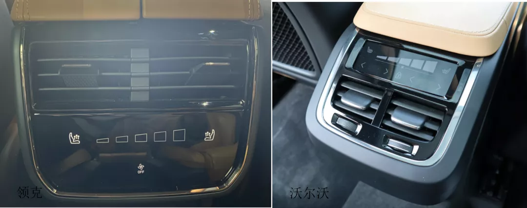 二排空调调节面板上显示的格式跟沃尔沃很相似,遗憾的是空调出风口的拨轮在开闭位置完全没有阻尼。