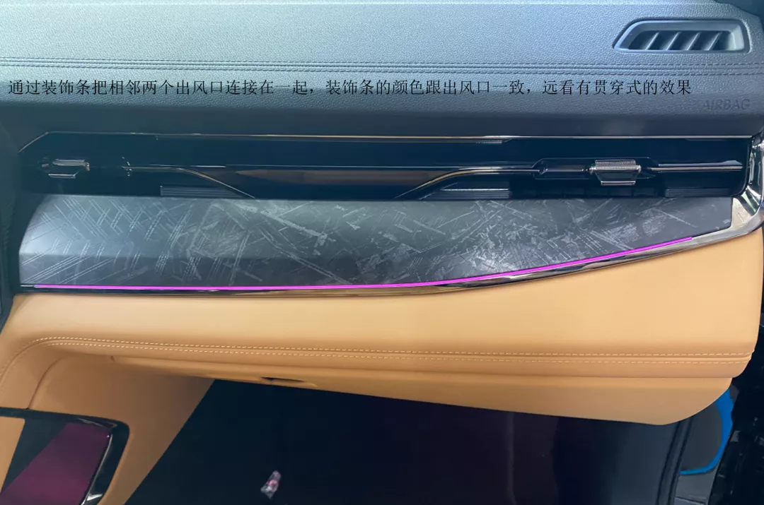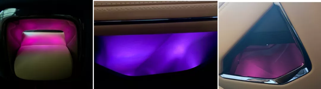 全车除了在仪表板和门板的常规位置外,在头枕内部、门袋内部等多个地方都布置有五彩斑斓的氛围灯,提升了座舱的温馨氛围。