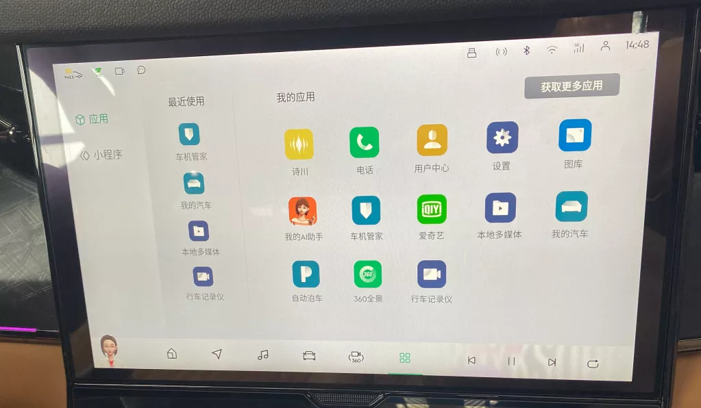 车机的分辨率非常高,功能也是一应俱全,在左下角还设置了一个可爱的虚拟语音对话的头像。