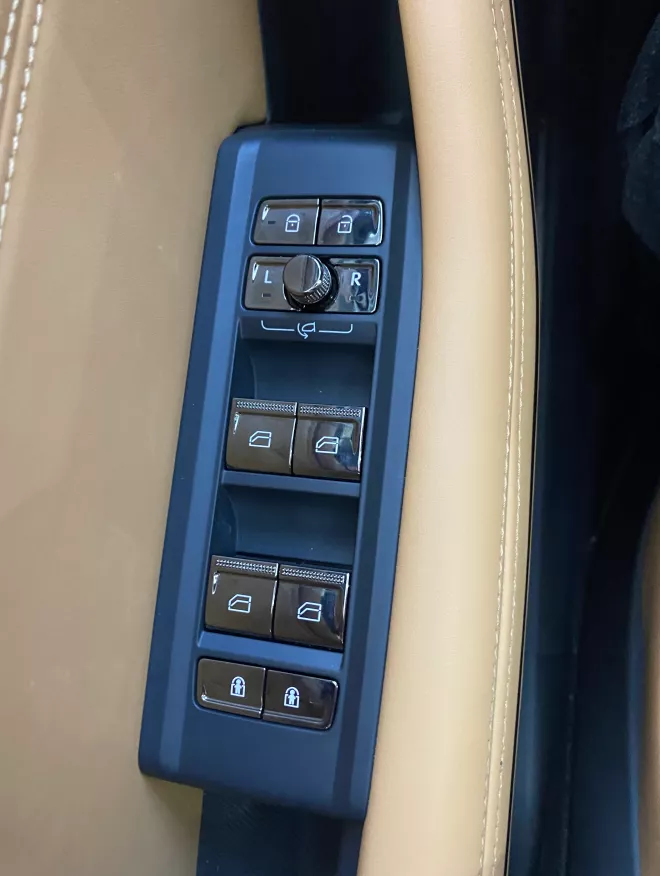 驾驶侧的开关面板布置了五排按钮,后排两个门的儿童锁在这里可以分开控制,这也是沃尔沃全系列车型上都没有做到的配置。