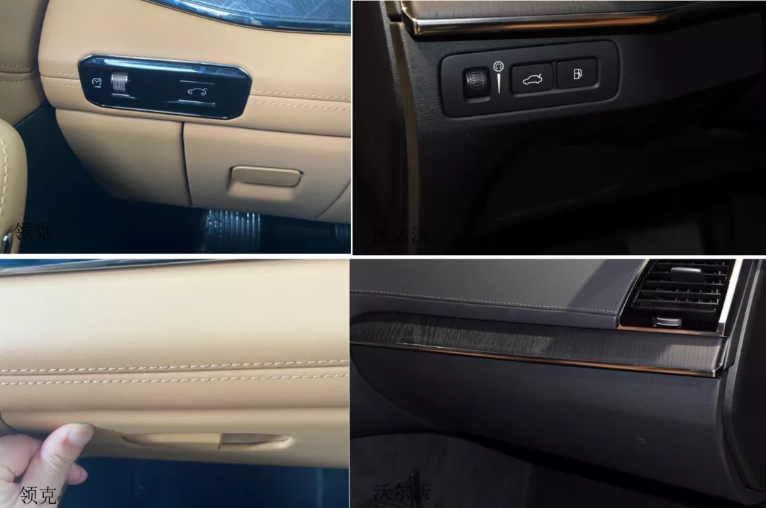 领克09在仪表板上的用料比XC90更扎实,上下本体和手套箱外盖板都使用了全皮覆盖,而沃尔沃同位置则都是塑料件: