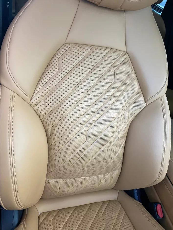 座椅两侧的护翼特别肥大,还能电动调节角度,在Y向上有足够的力把身体固定住,在强大的按摩力作用下也不会让你的身体扭曲。坐垫前侧加长了10cm左右,但因为成本原因托腿的功能没有办法像沃尔沃那么强大。